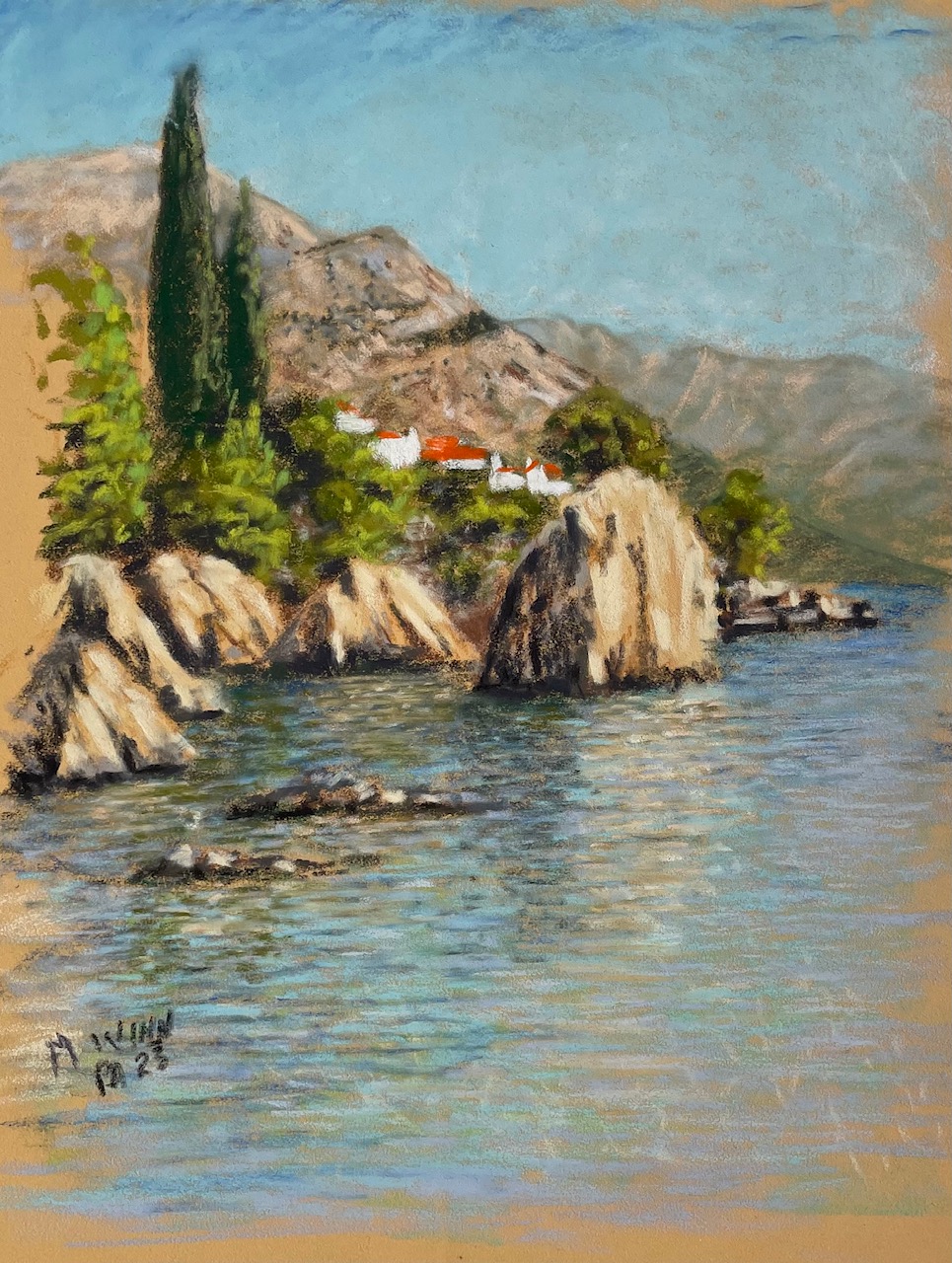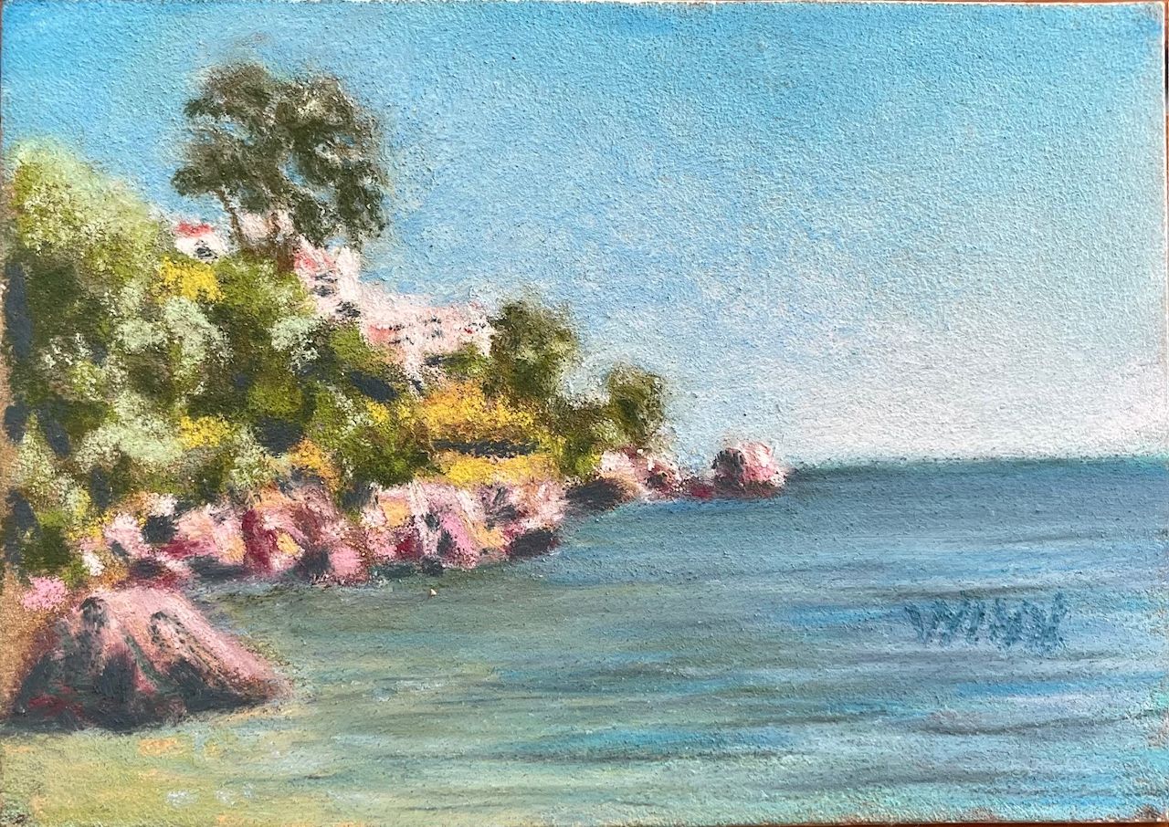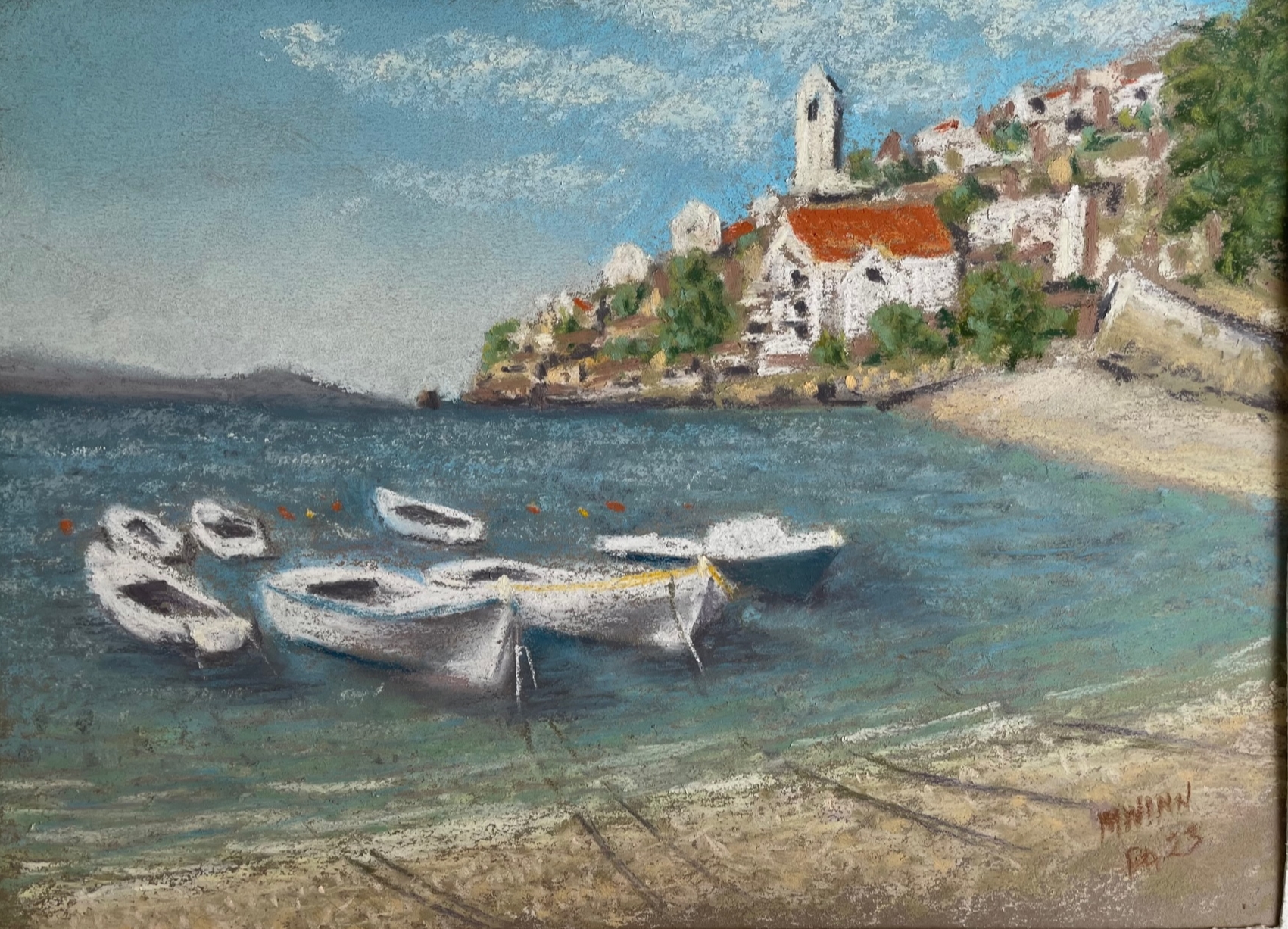 Title : Pisak Harbour – Plein Aire Soft pastels, Rembrandts and Sennelier on Pastelmat, 20x30cm In Private Collection, Croatia